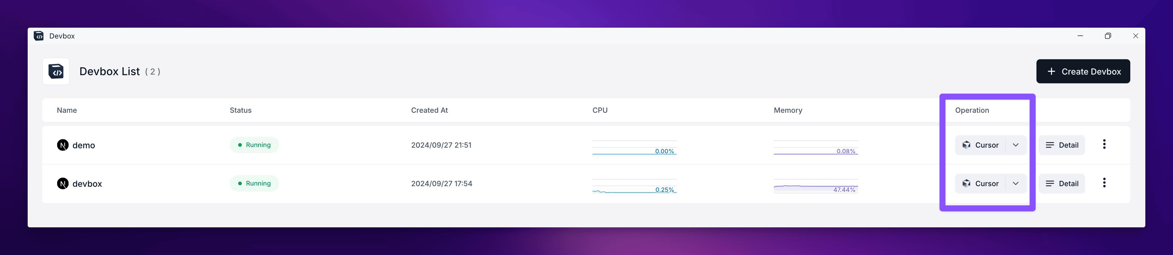 - Once installed, Cursor will establish a remote connection to your DevBox runtime.