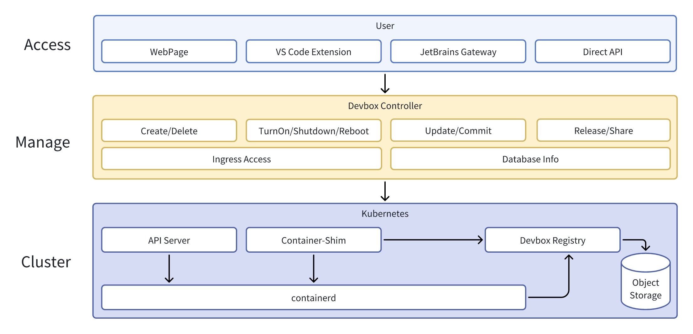 Sealos Devbox is built on a layered architecture, comprising these key components: